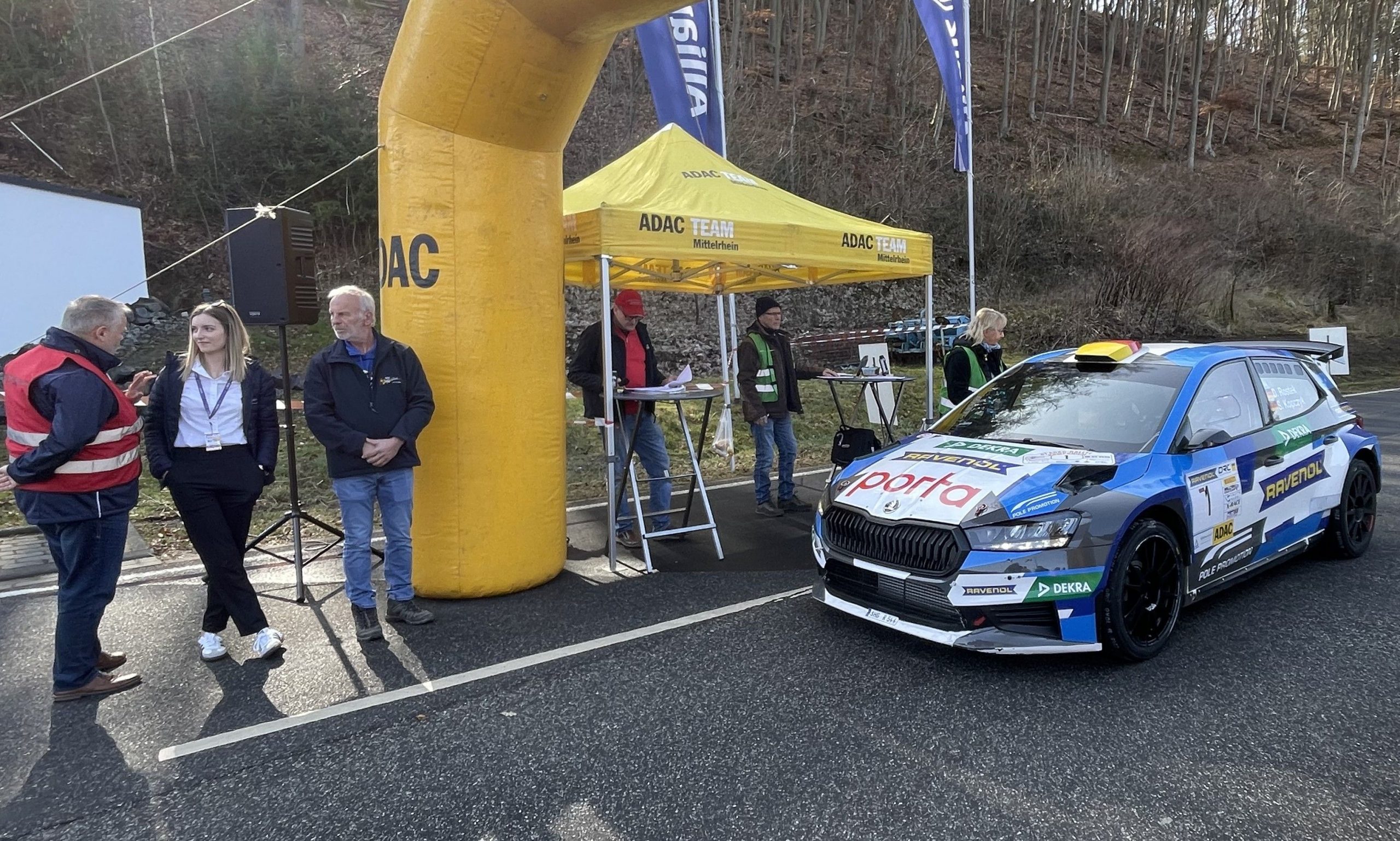 Die erlösende Nachricht kam schließlich am Veranstaltungstag selbst. Als der Vorauswagen die Strecke kontrollierte, meldete sich der Fahrer über Funk: „Leitstelle für 00 – WP 2 in Ordnung, staubt gut ab.“ Kurz darauf konnte die Wertungsprüfung planmäßig gestartet werden. Für das gesamte Organisationsteam war diese Rückmeldung Balsam für die Seele – wieder eine Herausforderung gemeistert. Möglich war uns dies jedoch nur durch die Unterstützung der Gemeinde Kempenich, die uns Gemeindearbeiter und Kehrmaschine zur Verfügung stellten. Gerade solche Momente zeigen, wie wichtig die enge Zusammenarbeit innerhalb und außerhalb des Vereins ist, denn ohne dies wäre eine erfolgreiche Veranstaltung für uns nicht zu stemmen.