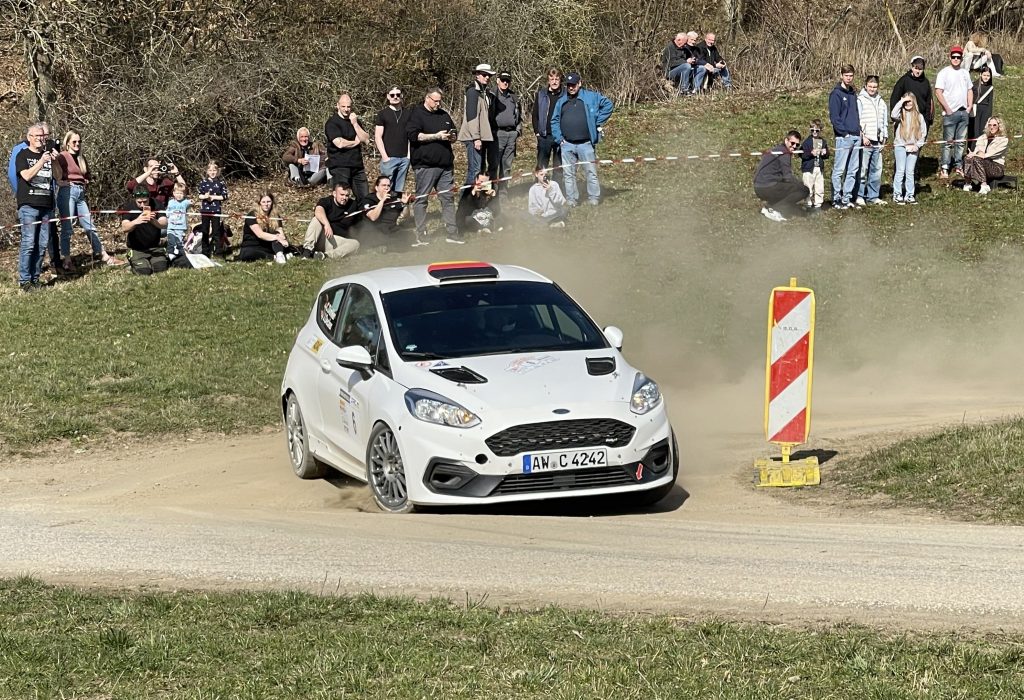 Für die amtierenden DRC Vize-Meister Kevin Müller/Stefanie Spreitzer lag der Auftaktlauf direkt vor der Haustür: „Der Saisonstart mit Heimspiel ist immer schwierig“, formulierte das Duo. Das Duo im Toyota GR Yaris mischt zwar seit Jahren immer in der Cup-Spitze mit, komplett problemlos verlief es bislang jedoch nie. Vor allem in der Heimat. Wieder kam zur Hälfte das vorzeitige Aus. Besser lief es für Colin Dünker (Grafschaft)/Jonas Decker (Nohfelden). Kontinuierlich arbeitete sich das Paar heran ans Spitzenquartett und belegte am Schluss einen hervorragenden vierten Platz. Besser waren nur die Zweitplatzierten Christopher Gerhard (Viersen)/Lena März (Hohenfels-Essingen). Die von ihnen gefahrenen Zeiten reichten noch nicht ganz, um mit dem Konkurrenten Rostek mithalten zu können. Laut Gerhard sucht man beim neuen Citroen C3 Rallye 2 noch nach dem richtigen Set Up. Den dritten Platz im Gesamtklassement erreichte das Team Max Reiter (Dillingen)/ Conny Nemenich (Merchweiler).